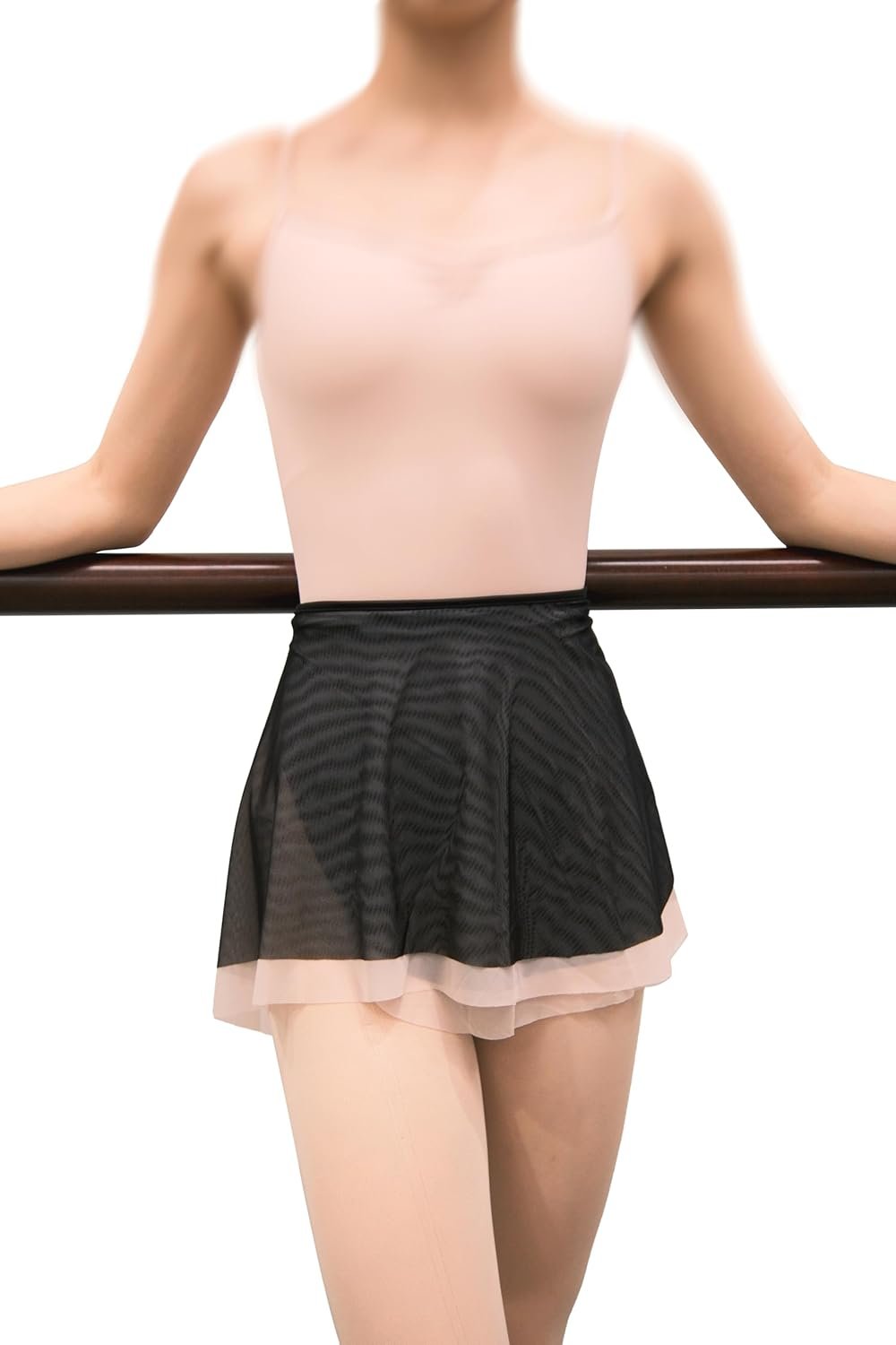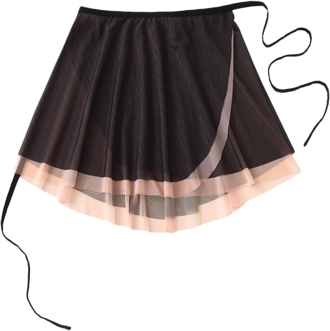 Ballet tutu, double-layered two-tone mesh, one-piece tie-waist design, elastic waistband