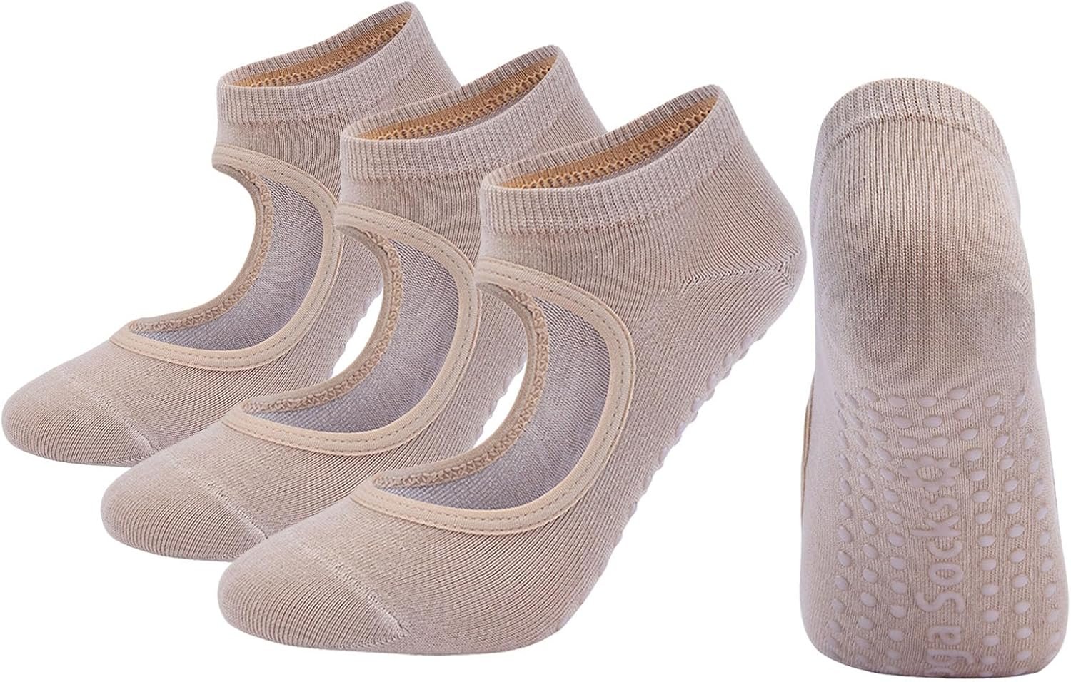 - Yoga socks with grips on the bottom provide safety and security at anytime.Each pair of yoga socks has a large silicone covering on the bottom that provides excellent grip on any surface. Whether you’re doing Pilates, fitness, dance or any other sport, it will keep you balanced in any position and prevent slipping.